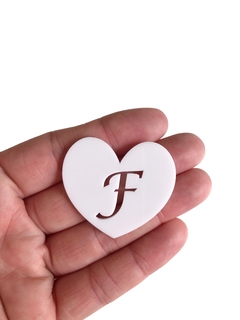 Aplique coração branco com letra vazada acrílico 4cm - 1 unidade